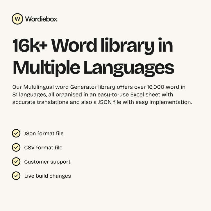 Download our 16k+ word library available in Excel and JSON file.